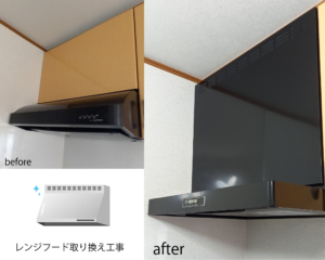 キッチンの水栓交換はもちろん、キッチンでお掃除が大変なレンジフードの交換も