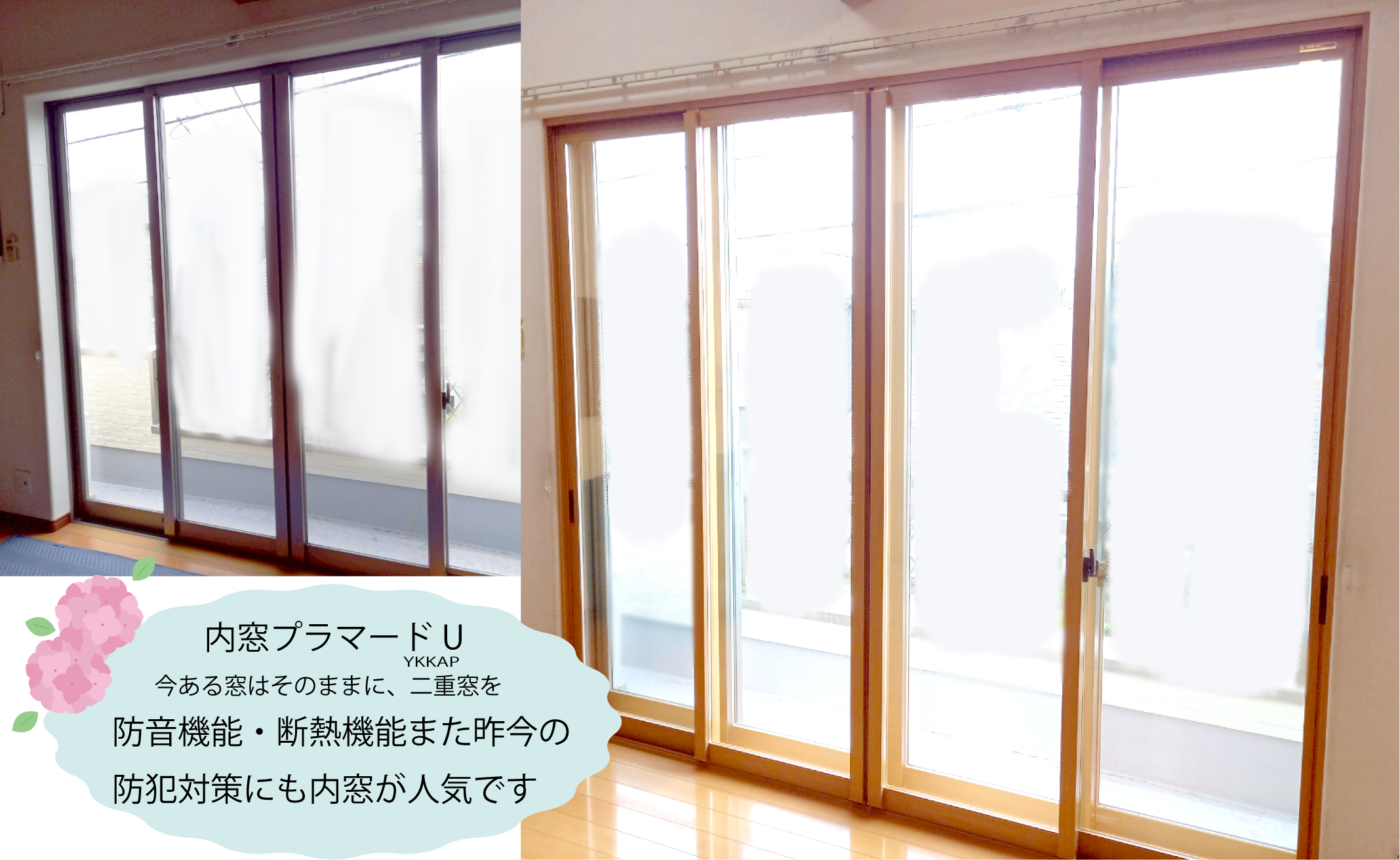 今ある窓に内窓を取り付けて二重窓にする工事。断熱対策、防音対策、防犯対策の効果も高くシンケイおすすめです!