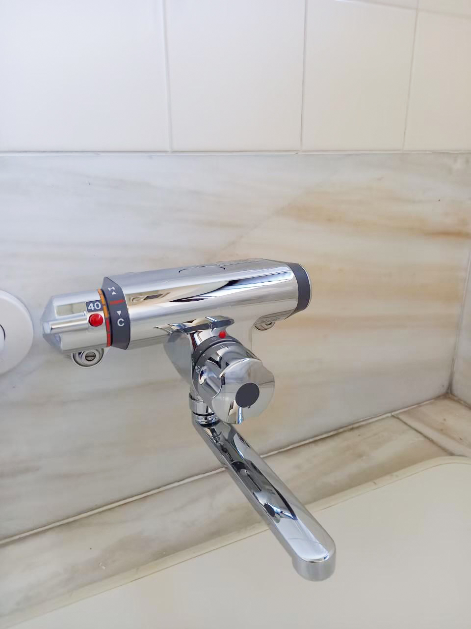 今回、定量ハンドルがあり、希望湯量の目盛りも設定すると、その量だけ水(湯)を出して自動で止まる水栓に交換させていただきました。これからの時期は、お風呂でカラダを暖めてゆっくり過ごしたいですね♪