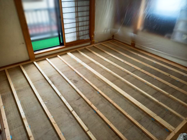 畳を撤去した分、床の厚みが変わるため、下地の高さを合わせる必要があります。
