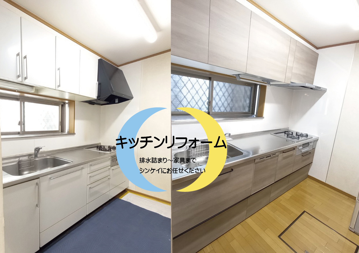 キッチンのリフォームを承りました。 また、以前よりキッチンの排水詰まりがあるとのことでしたので、 そちらも快適にお使いいただけるように水道工事部とリフォーム部それぞれ作業させていただきました。 まずは以前のキッチンを撤去していきます。 水道設備を整えていきます。 排水管は高圧洗浄を...